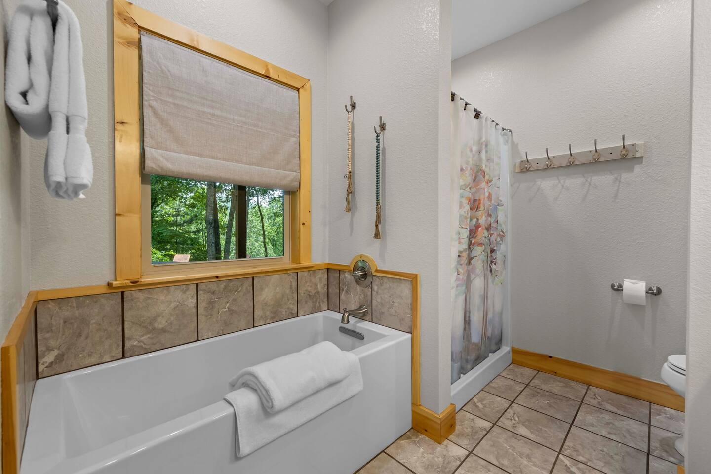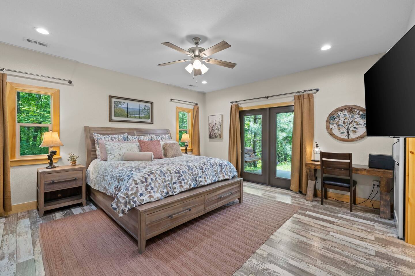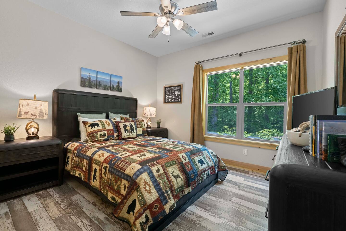 Nestled in an exclusive gated community, our charming cabin offers a rustic one-level design with an open floorplan that invites you to unwind and connect with nature. Immerse yourself in modern amenities, including a 65” HD Smart TV, a gas fireplace, and ample seating to accommodate up to eight guests. The fully-equipped kitchen, complete with stainless steel appliances and granite countertops, provides the perfect space to cook up delicious meals and entertain friends and family. With its spacious dining area, you can seamlessly blend the living, dining, and kitchen spaces, creating a comfortable and inviting atmosphere. Retreat to three spacious bedrooms, each sharing two full bathrooms. The primary ensuite bedroom offers an upscale retreat with a soaking tub, an HD Smart TV, a walk-in closet, and a private entrance to the back patio with a hot tub. After a day of exploring the great outdoors, unwind in the comfort of your own private oasis. Step into the private backyard oasis, a haven of tranquility featuring a covered patio with a spacious outdoor dining table for six. Conveniently located near a propane Weber grill, the hot tub, an inviting outdoor wood-burning fireplace, and a cozy fire pit surrounded by seating for six more, this area provides the perfect spot to relax and enjoy the beauty of the mountains. Ample storage space is available in the garage, ensuring that all your recreational gear is well-kept and organized. Nanta-Haven is conveniently located near various outdoor attractions, including the Nantahala Outdoor Center, Fontana Lake, Tsali Recreation Area, Smoky Mountain National Park, Tail of the Dragon roadway, and Cherokee Casino. Whether you’re seeking adventure in whitewater rafting, hiking, mountain biking, horseback riding, fishing, or skiing, Nanta-Haven is the perfect base for your next outdoor escapade. Reserve your stay today and create unforgettable memories with your loved ones in the warmth and charm of our cozy cabin, surrounded by breathtaking mountain vistas. ** Please click the heart in the top right of our picture to add our cabin to your wishlist. Doing this helps you find our cabin when you're ready to book!**