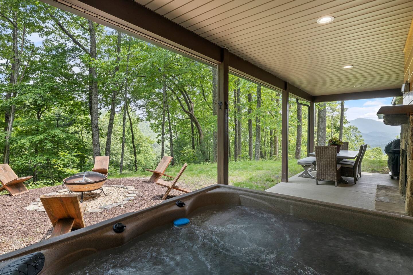Guests have access to the entire home and garage, which is situated atop a mountain on 2.5 acres of land. The private hot tub and outdoor wood-burning fireplace are located on the back patio, which is covered and can be enjoyed in the rain and snow. There is ample parking space for 6 vehicles.