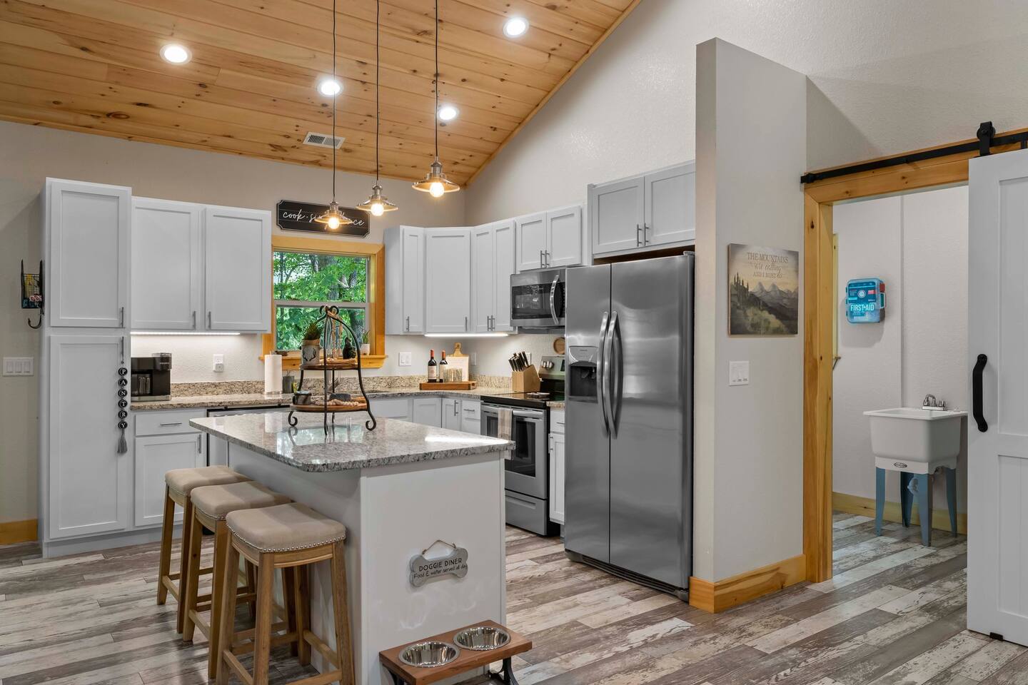 The entrance to the neighborhood is gated and the main neighborhood roads are all paved. The cabin itself has a gravel driveway. At times, roads may be icy, so 4WD is strongly recommended during the winter months (December - February). There is ample parking space for 8 vehicles.